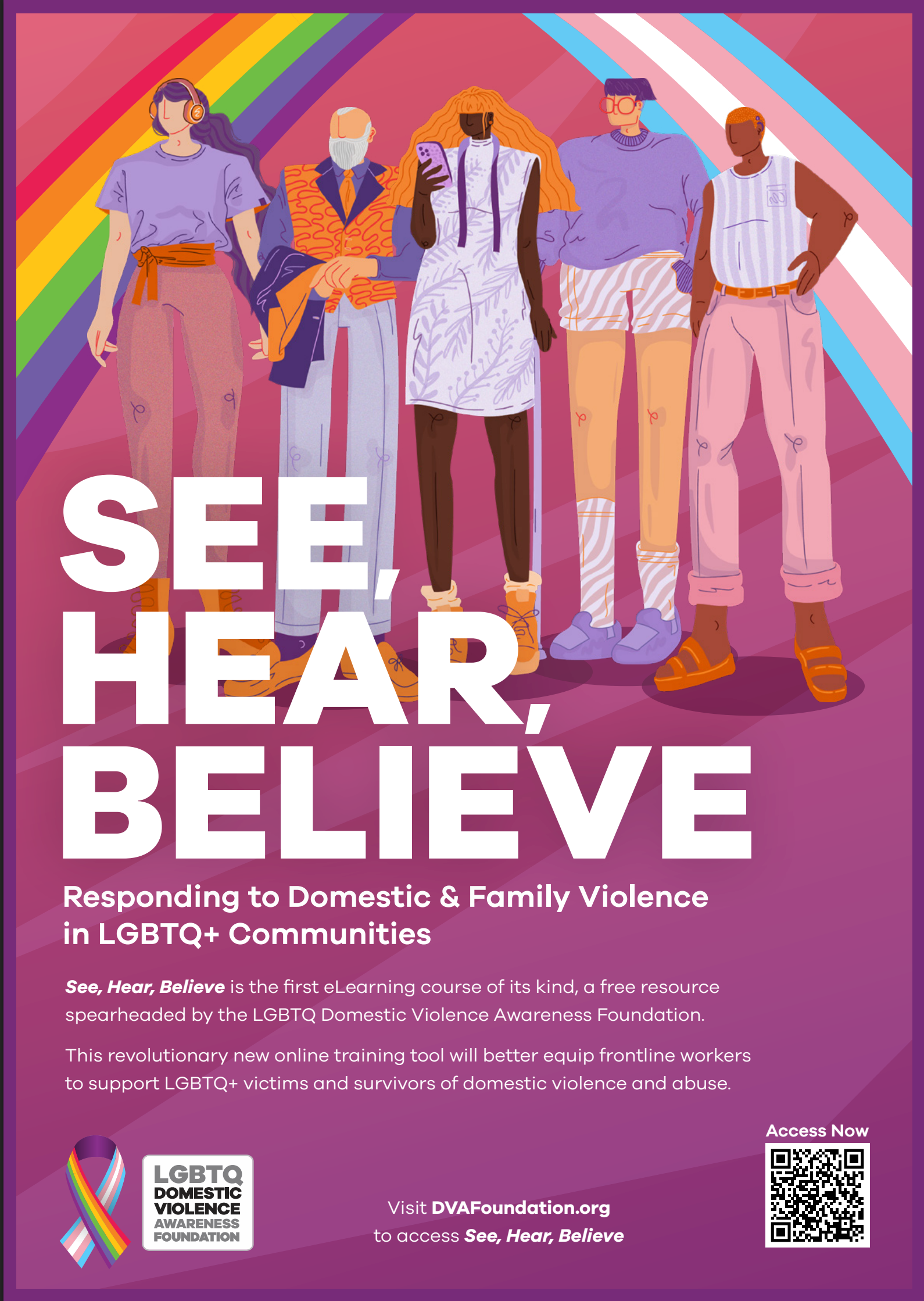We are working to ensure better outcomes for LGBTQ+ victims and survivors, and end domestic violence in LGBTQ+ communities through our awareness campaigns, education programs and reducing barriers to reporting abuse and accessing support.